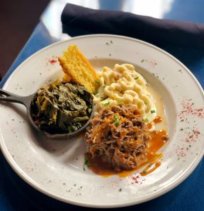 smoked gouda-bacon mac & cheese, stewed collard greens 12